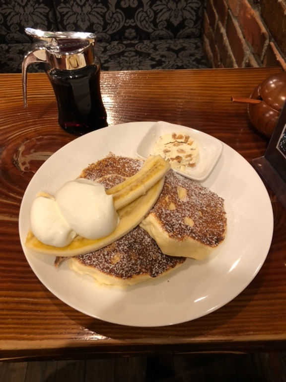 生地に入っているチーズのコクと塩気がバナナや生クリーム、メイプルシロップの甘みを引き立てていて個人的に今まで食べた中で一番好きなパンケーキです。