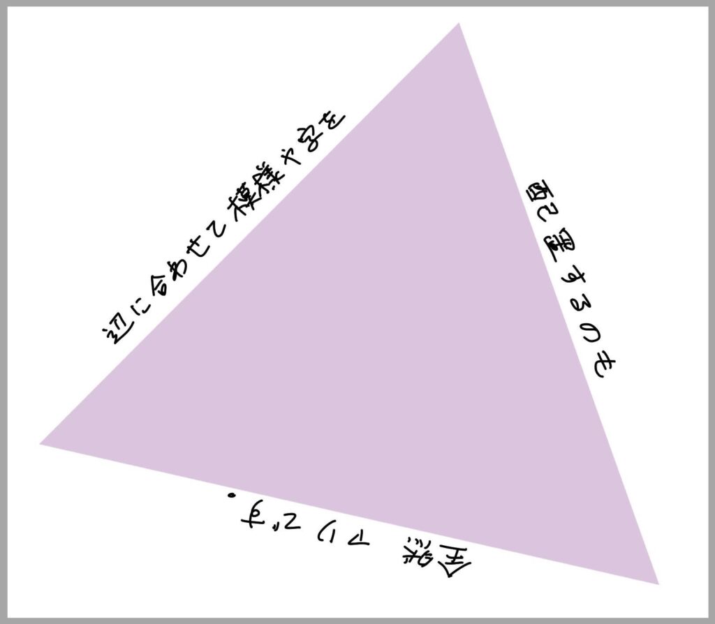 一番無難なのは上のように四角に合わせて構成することですが、丸や三角で構成するとワンランクおしゃれなものが仕上がります。